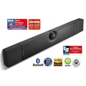Саундбар для аудіофілів? Так, він існує. Окрім чудового й захоплюючого об'ємного звуку для фільмів або телепередач, Devialet Dione також чудово підходить для прослуховування музики - на що ми рідко наважуємося, коли мова заходить про саундбари. Завдяки солідному масиву динаміків з великою потужністю підсилювача, вона також має дуже переконливий бас. Не зовсім на рівні з кращими окремими рішеннями, але все ж дуже вражає для своїх розмірів. Dione коштує трохи дорожче, ніж конкуренти, але якщо ви шукаєте потужний саундбар, який просто ОБОВ'ЯЗКОВО має бути без додаткових динаміків, ви навряд чи будете розчаровані.