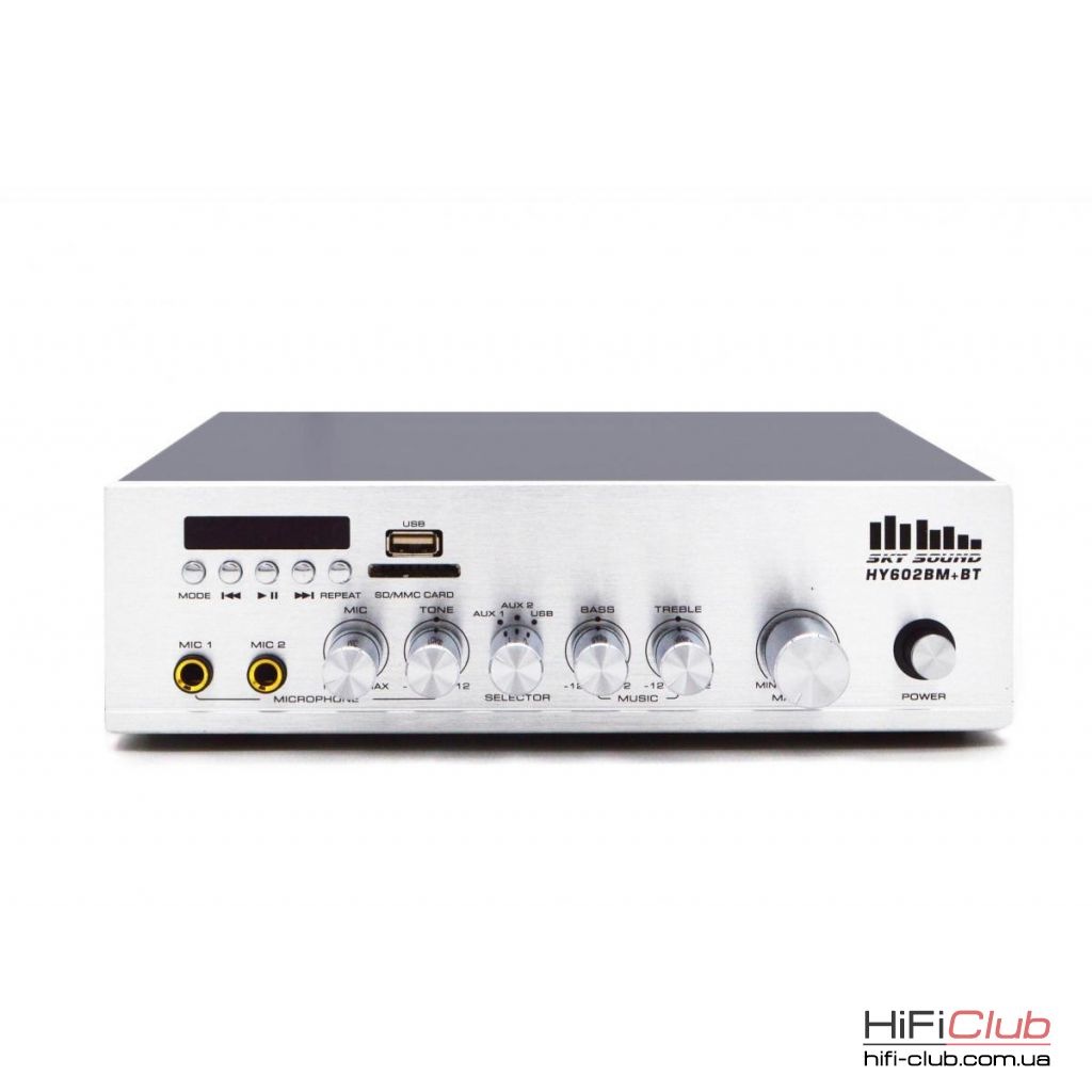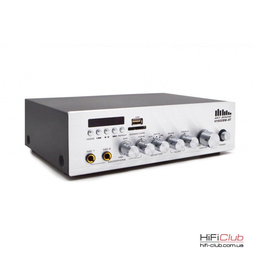 SKY SOUND HY-602MB+BT - двухканальный усилитель мощности для подключения к низкоомным акустическим системам трансляции фонового озвучивания и речевого оповещения.