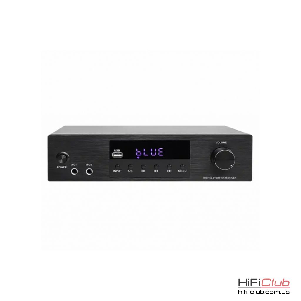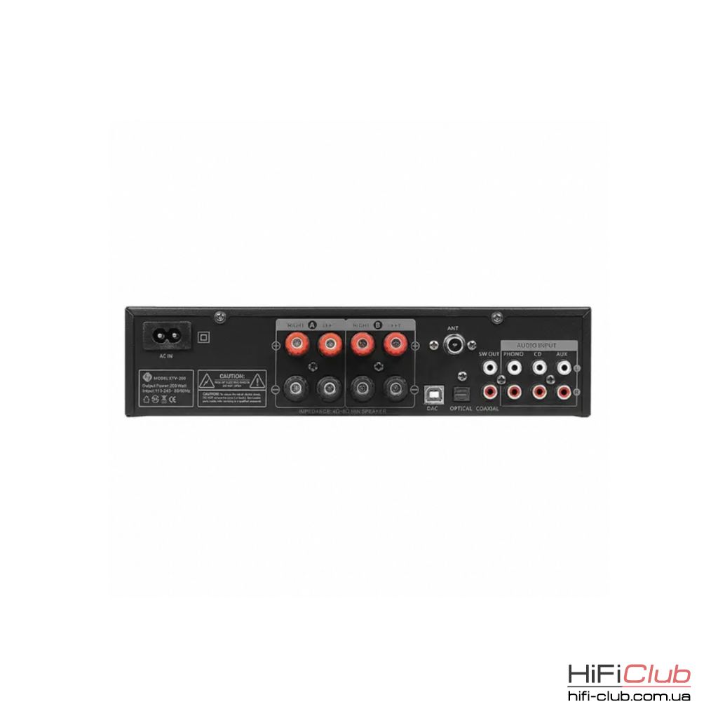 Стерео-підсилювач DV audio KTV-200. Підсилювач потужності домашнього використання з обладнанням типу Hi-Fi. Має USB-плеєр, BT підключення, FM-тюнер.