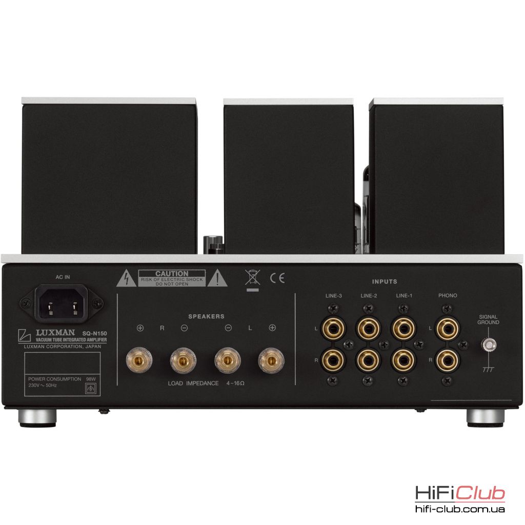 Підсилювач Luxman SQ-N150 оснащений трьома лінійними підсилювачами, а також входом Phono для програвачів. Пристрій також має якісний вбудований підсилювач для підключення навушників.