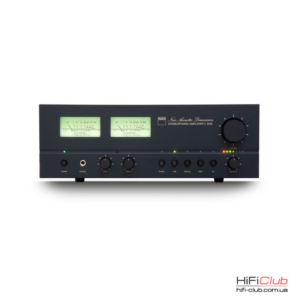 NAD C 3030 поєднує в собі ретро-стиль і сучасні можливості підключення в компактному інтегрованому підсилювачі. Завдяки традиційним деталям, таким як VU-індикатори і курсивний логотип NAD, його пропорції нагадують зовнішній вигляд оригінального NAD 3030, при цьому він легко вписується в сучасні житлові приміщення. Всередині 50 Вт на канал чистої потужності NAD забезпечують справжнє Hi-Fi-звучання, підтримуване HDMI eARC, Bluetooth і виходом на сабвуфер з керуванням басами. Як частина серії Classic від NAD, C 3030 пропонує баланс характеру, якості звуку і повсякденної практичності.