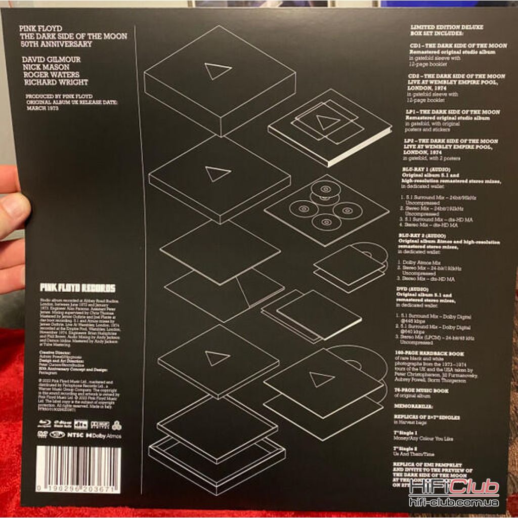 До нового делюкс-боксу увійшли CD і вініл з нещодавно відреставрованим студійним альбомом, а також аудіо Blu-Ray + DVD з оригінальним 5.1 міксом і відреставрованою стерео-версією. До набору також входить додатковий новий Blu-ray диск з реміксом Atmos, а також CD і LP "The Dark Side Of The Moon - Live At Wembley Empire Pool, London, 1974".