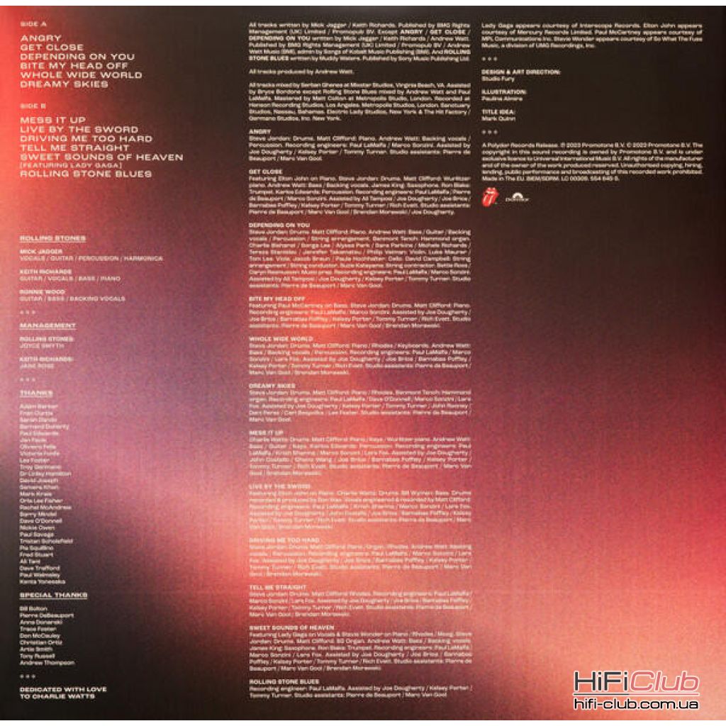 Written-By - Andrew Watt (3) (треків: A1 to A3), Keith Richards (треків: A1 to B5), Mick Jagger (треків: A1 to B5), Muddy Waters (треків: B6)