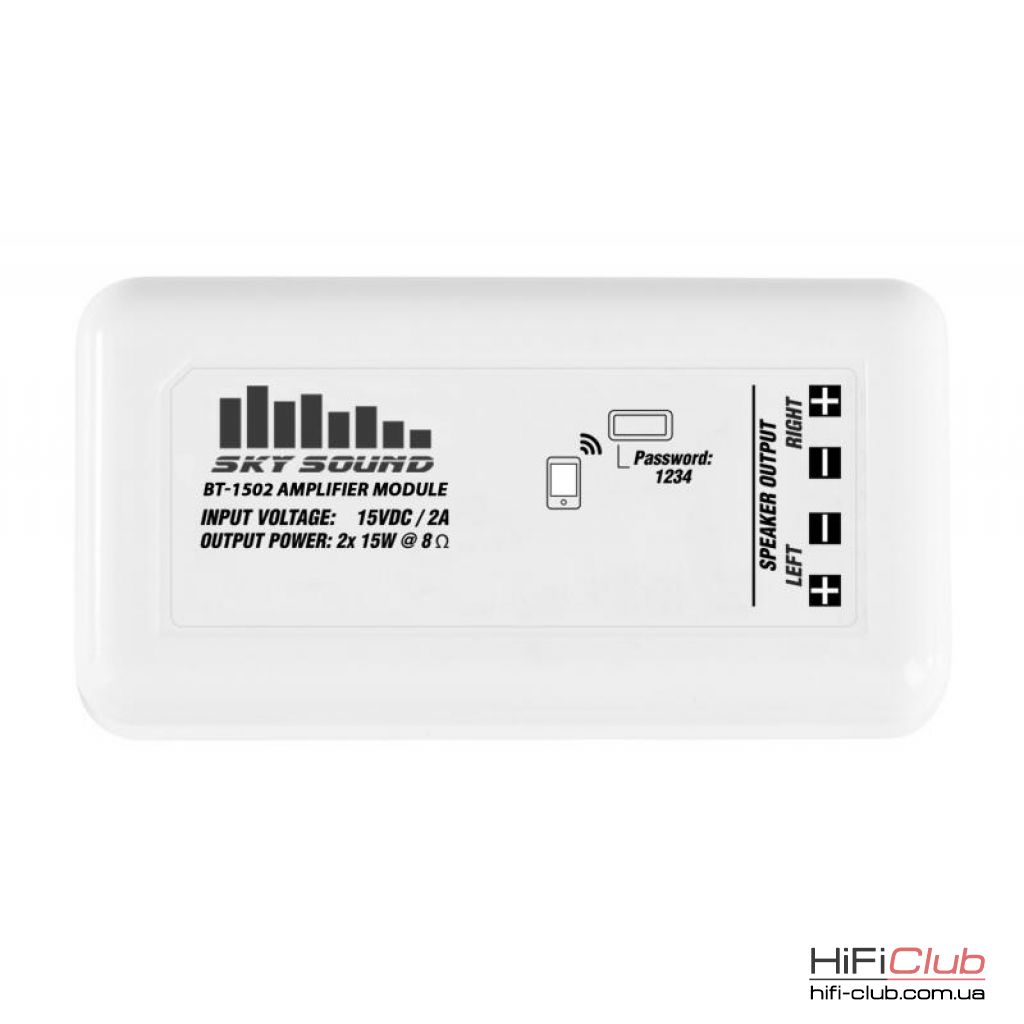SKY SOUND BT-1502 - блютуз програвач із вбудованим підсилювачем потужності, який призначений для бездротової трансляції аудіо контенту за допомогою bluetooth підключення. Робоча дистанція з'єднання від джерела сигналу становить 15 метрів.