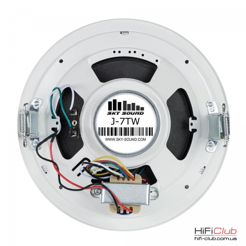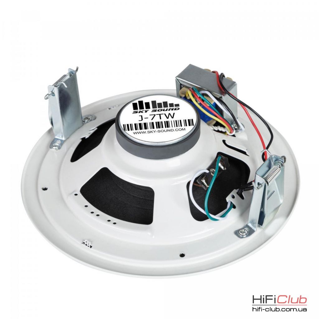 SKY SOUND J-7 TW - широкосмуговий стельовий динамік для підключення до трансляційних підсилювальних систем. Серія стельових акустичних систем Sky Sound J пропонує ідеальне співвідношення ціни та якості відтворення звукового сповіщення. Корпус виконаний у металевому корпусі.