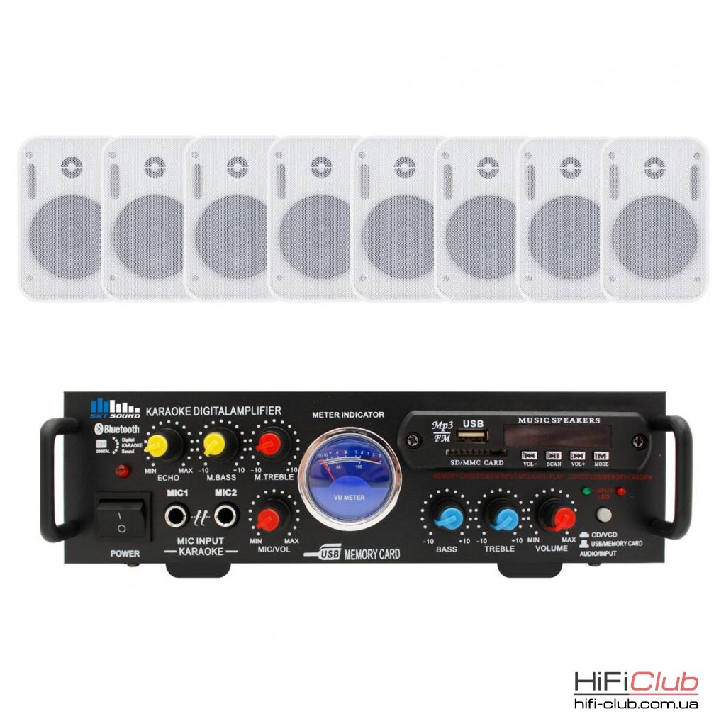 Акустический комплект SKY SOUND WSM-2408 состоит из 8-х настенных колонок Sky Sound PM-2401W и одного усилителя мощности Sky Sound  SM-088a. Комплект системы озвучивания предназначен для ресторанов, кафе, салонов красоты или офисных помещений и т.д. (до 100  кв.м.).
