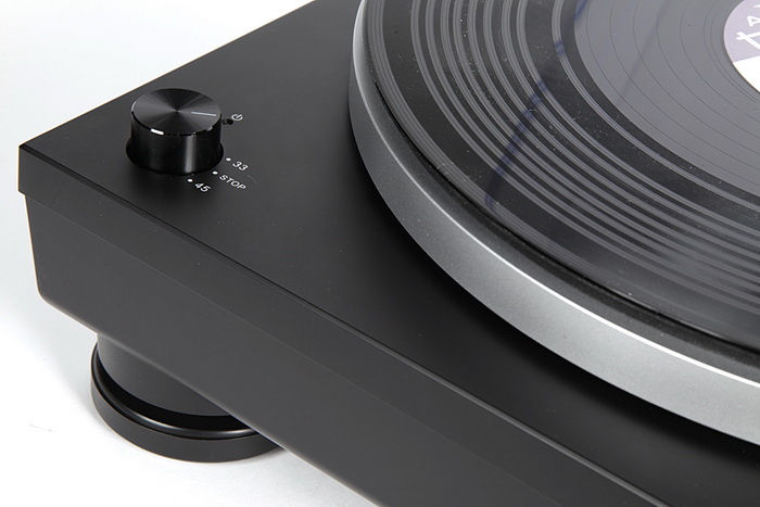 Як і більшість вертушок в лінійці компанії Audio-Technica, AT-LP5x – прямоприводная модель, тобто опорний диск приводиться в рух безпосередньо шківом двигуна, без використання додаткового пассіка або ролика. Такий тип приводу традиційно використовувався японськими виробниками періоду розквіту вінілу. Сам корпус плеєра виконаний у мінімалістському дизайні, з органів управління на верхню панель винесена тільки комбінована ручка, яка відповідає одночасно за пуск диска і перемикання швидкостей обертання. Користувач може вибрати між 33,3 або 45 оборотами в хвилину, при цьому, на відміну від інших моделей, плавне регулювання швидкості обертання тут не передбачена. Для вертушки, призначена для домашнього використання, це абсолютно виправдано. Для зупинки диска використовується електронний гальмо, що спрацьовує практично миттєво.
