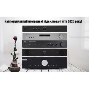 Заснований на схемотехніці класу G 5-ого покоління, Arcam Radia A25 давно не сходить зі станиць профільної преси - інтегральний підсилювач вийшов винятково вдалим, демонструє зачаровує ртутне звучання, яке можна слухати годинами без натяку на стомлення. «Під капотом» все відмінно - 2 x 100 Вт при навантаженні 8 Ом або 2 x 165 Вт при навантаженні 4 Ом, а також ЦАП на базі чіпа Sabre ES9280A Pro від компанії ESS Technology з підтримкою цифрових потоків до DSD1024. Фонокоректор також у наявності.
